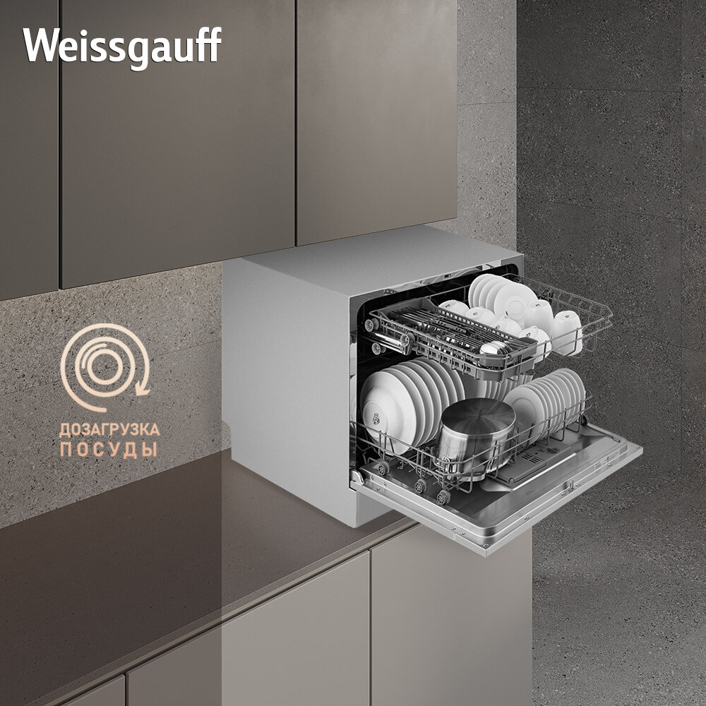 СохранитьНастольная посудомоечная машина Weissgauff TDW 4006 S З года гарантии, 8 комплектов, 7 программ, Электронное управление, Быстрая мойка 30 мин, Индикация работы, Таймер, Дозагрузка посуды интересное: