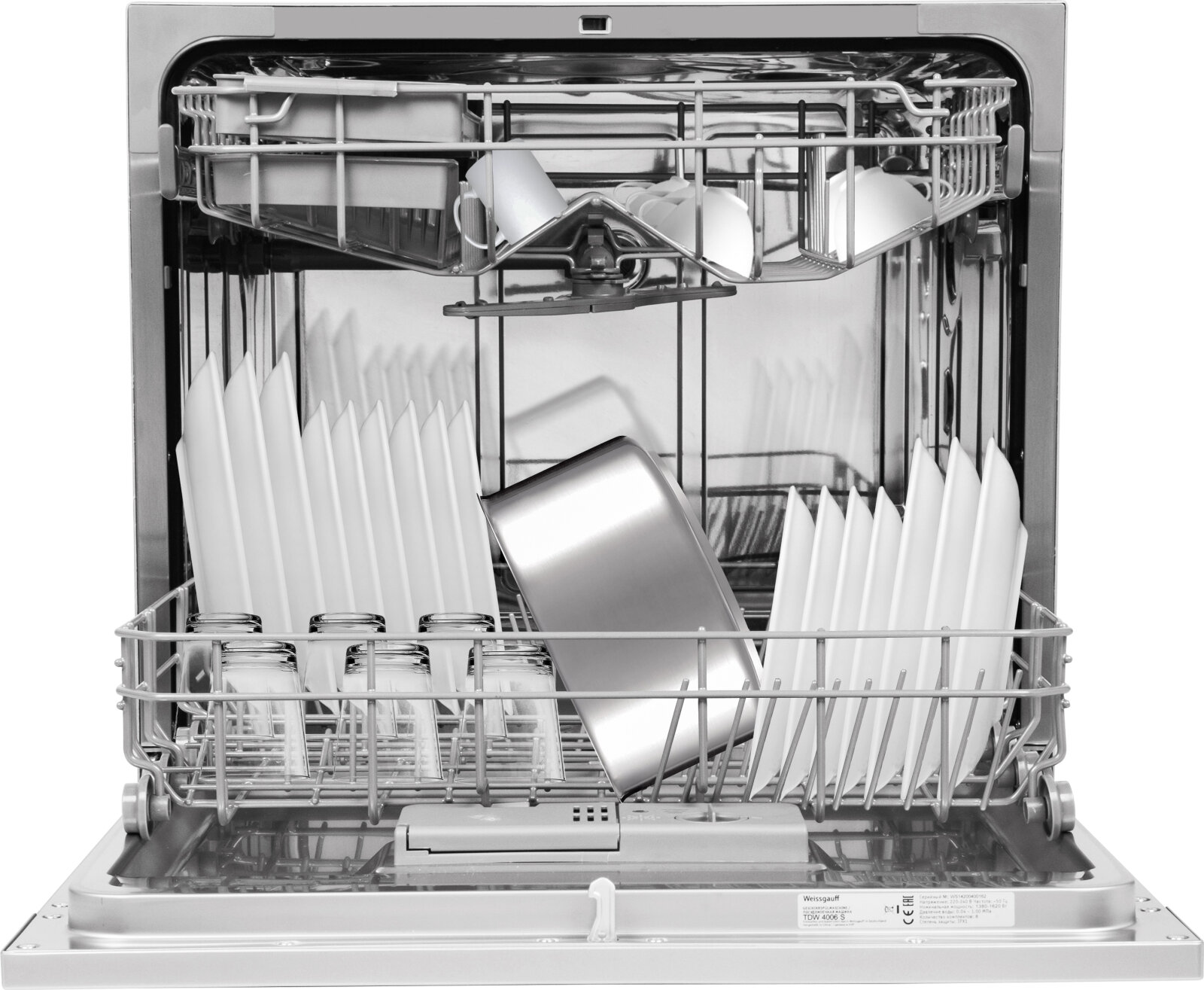 Купить Настольная посудомоечная машина Weissgauff TDW 4006 S З года гарантии, 8 комплектов, 7 программ, Электронное управление, Быстрая мойка 30 мин, Индикация работы, Таймер, Дозагрузка посуды
