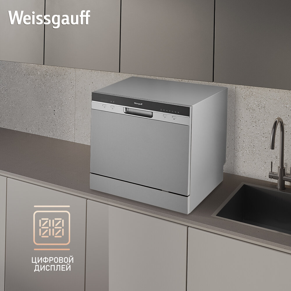 Настольная посудомоечная машина Weissgauff TDW 4006 D,З года гарантии, 8 комплектов посуды, 7 программ, Функция самоочистки, Быстрый режим 30 мин, Дисплей, Таймер, Низкий уровень шума, дозагрузка