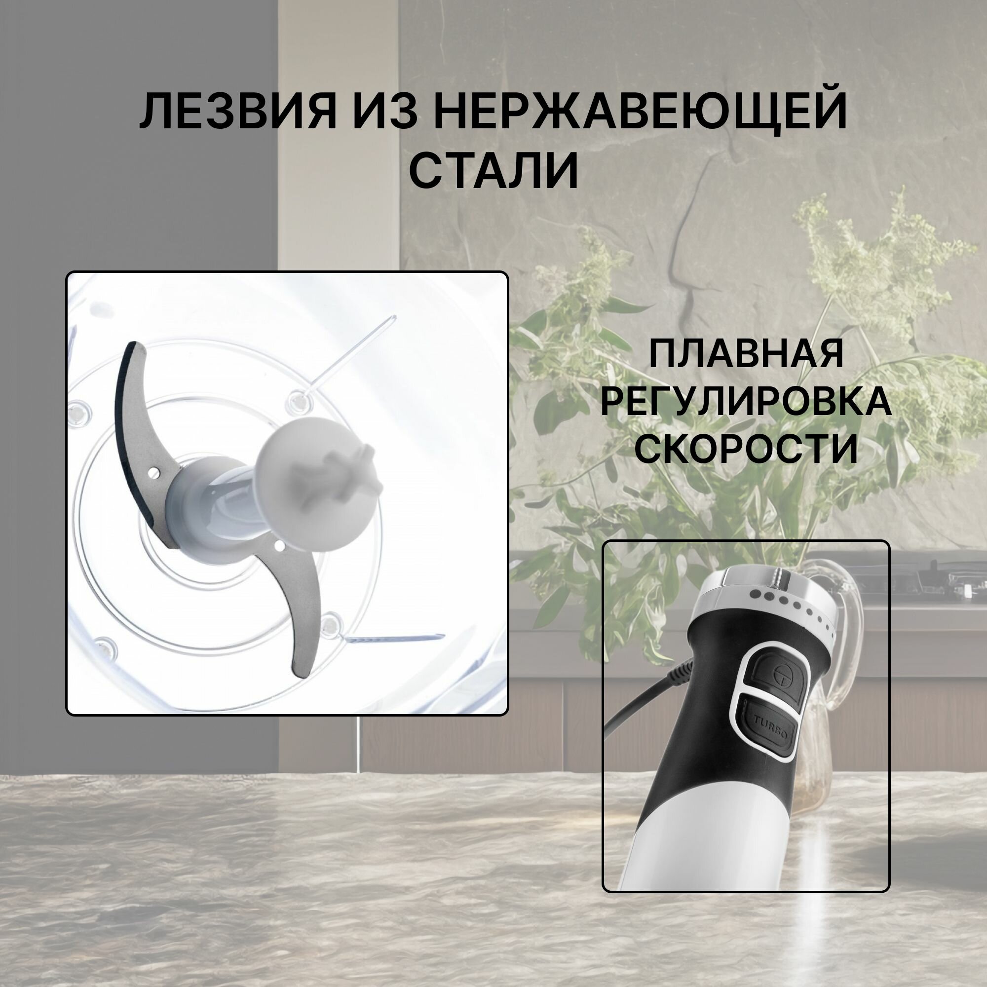 Блендер BRAYER BR1242 погружной, 800 Вт, нержавеющие лезвия, 2 скорости, плавная регулировка, венчик, измельчитель 500 мл
