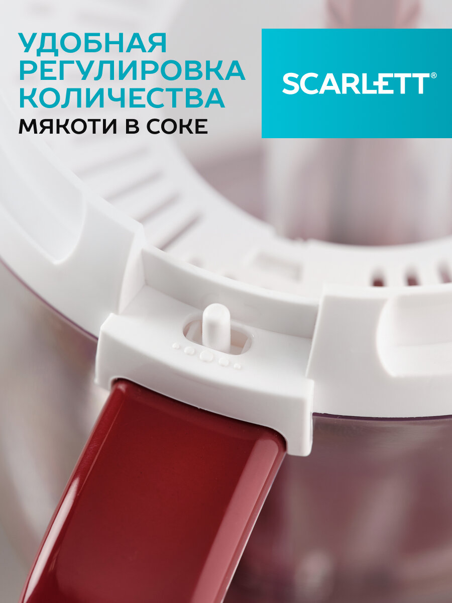 Соковыжималка Scarlett SC-JE50C08, red / white, 25 Вт, количество конусных насадок: 2