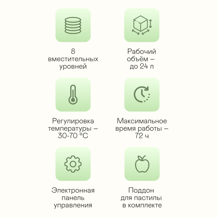 | Плюсы: | Отличная сушка на 8 поддонов. |