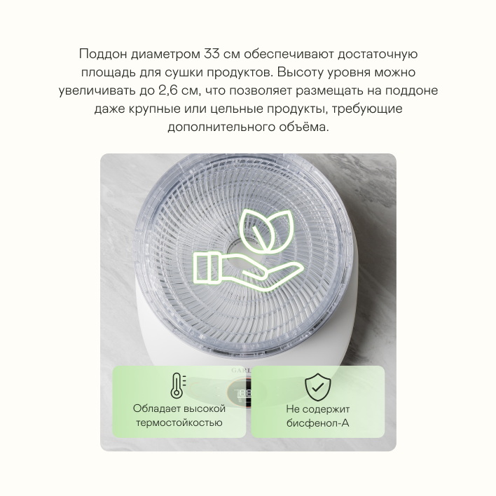 СохранитьСушилка для овощей и фруктов Garlyn D-05 Pro интересное: