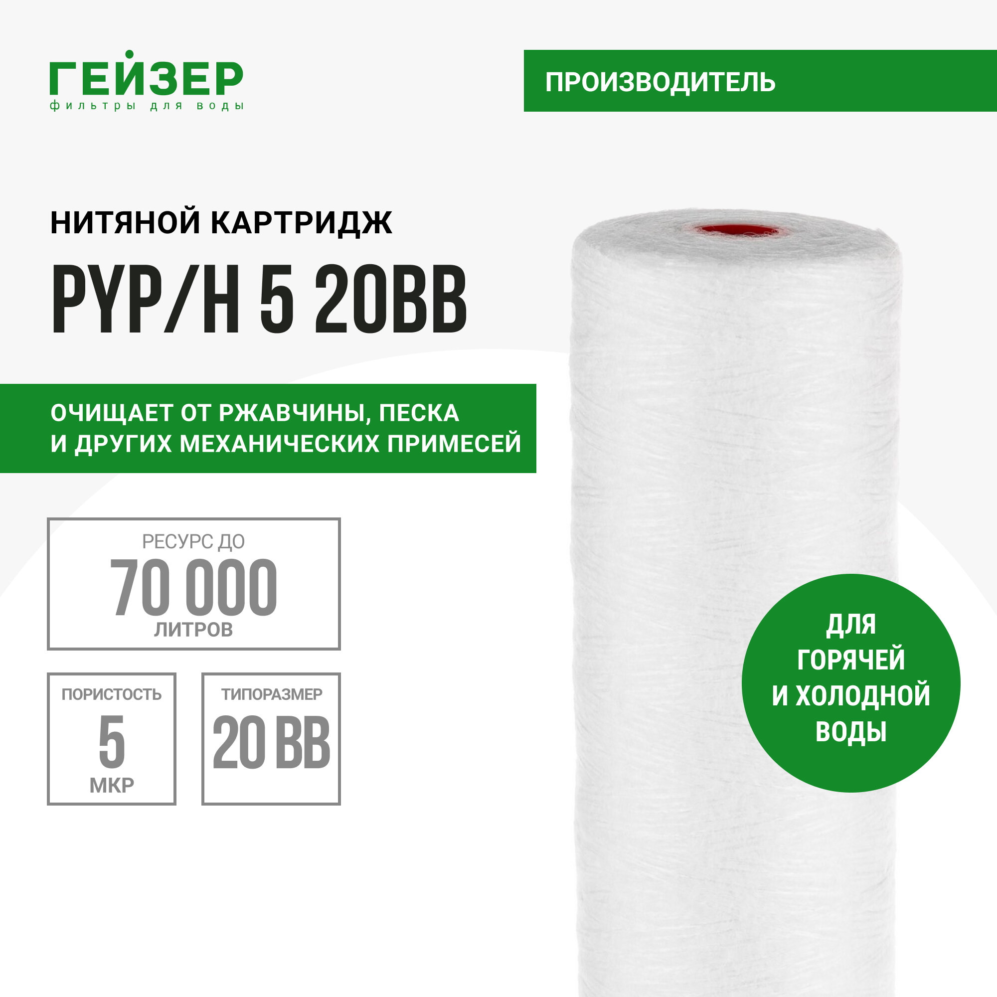 Гейзер Картридж Pyp/h 5 - 20BB для механической очистки горячей воды 28310 .