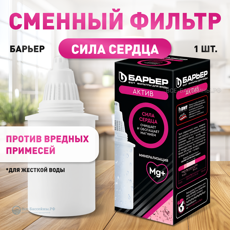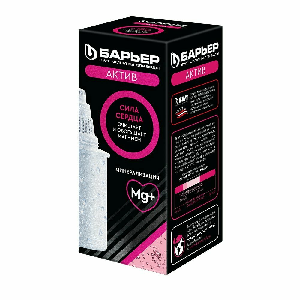 БАРЬЕР Актив Сила сердца, комплект кассет для фильтров-кувшинов, очищает воду и обогощает магнием, 2 шт