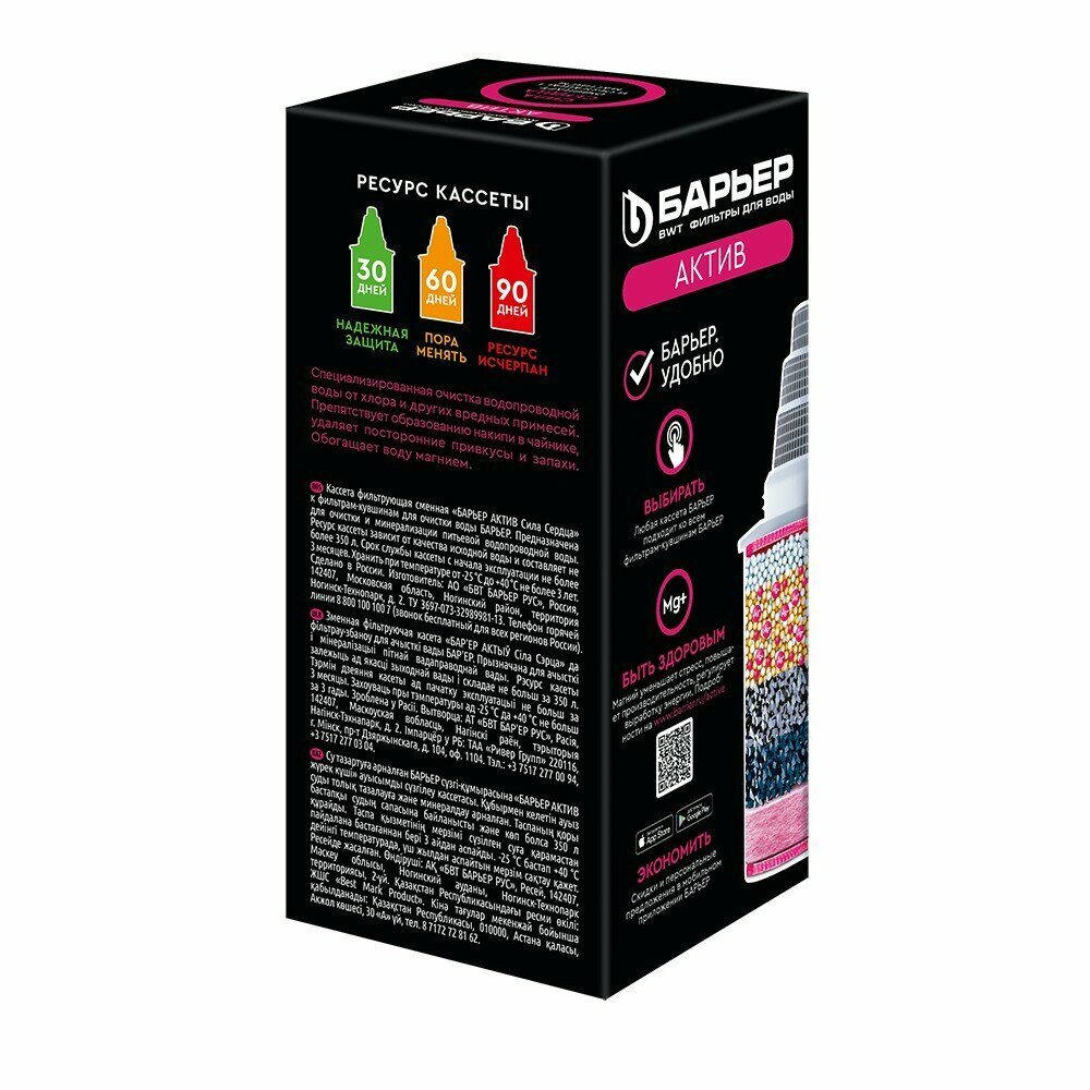 Кассета для водопроводной воды 350Л актив сила сердца (магний) К471Р12 БАРЬЕР