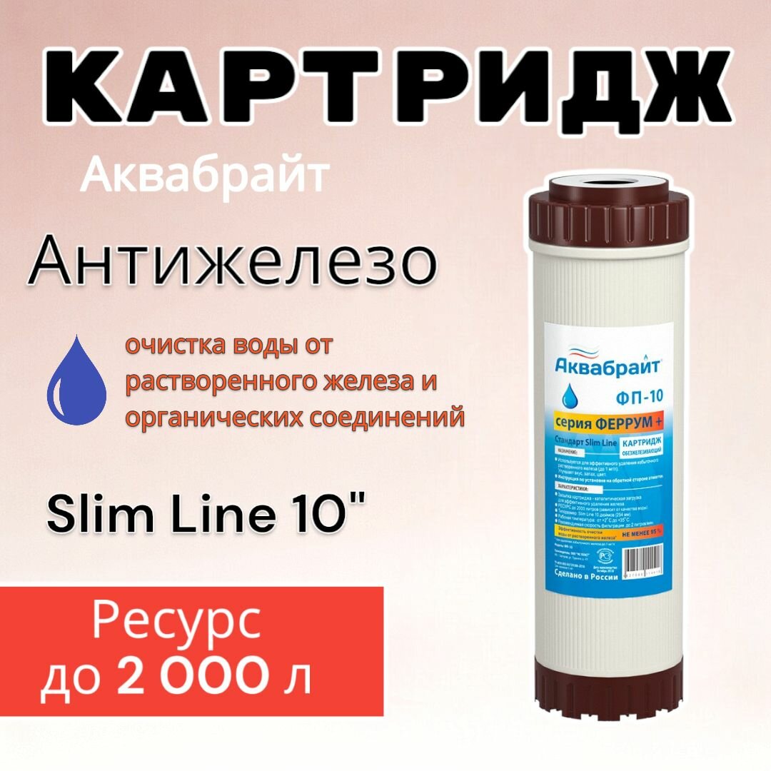 СохранитьКартридж обезжелезивающий Аквабрайт ФП-10, для очистки воды от растворенного железа, Феррум+ (SL10) интересное: