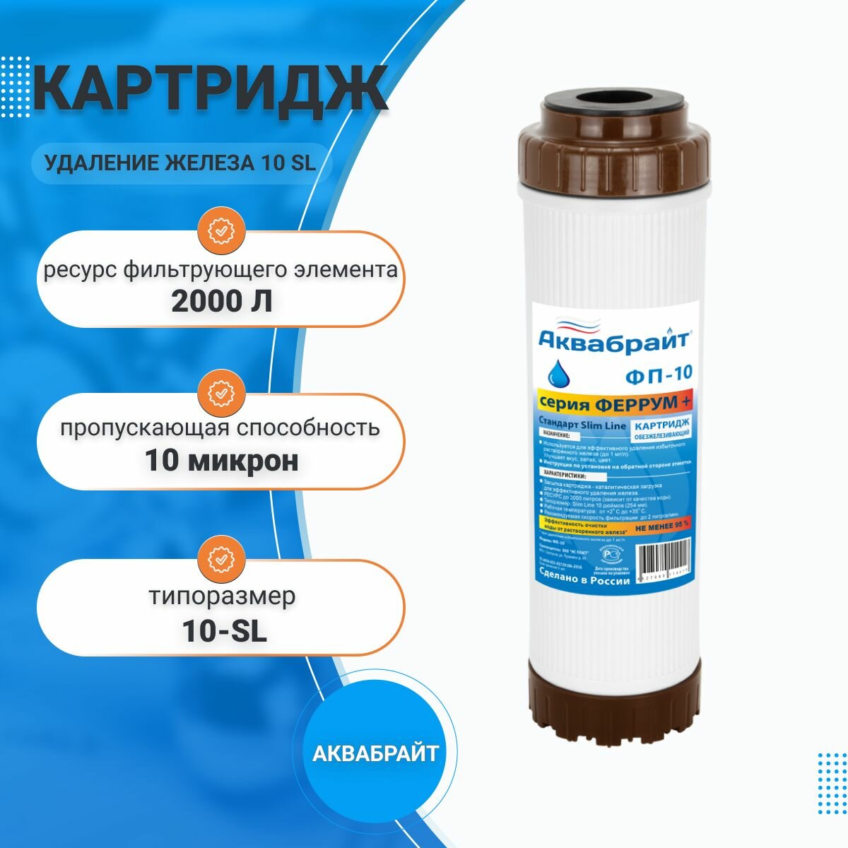 Купить Картридж обезжелезивающий Аквабрайт ФП-10, для очистки воды от растворенного железа, Феррум+ (SL10)