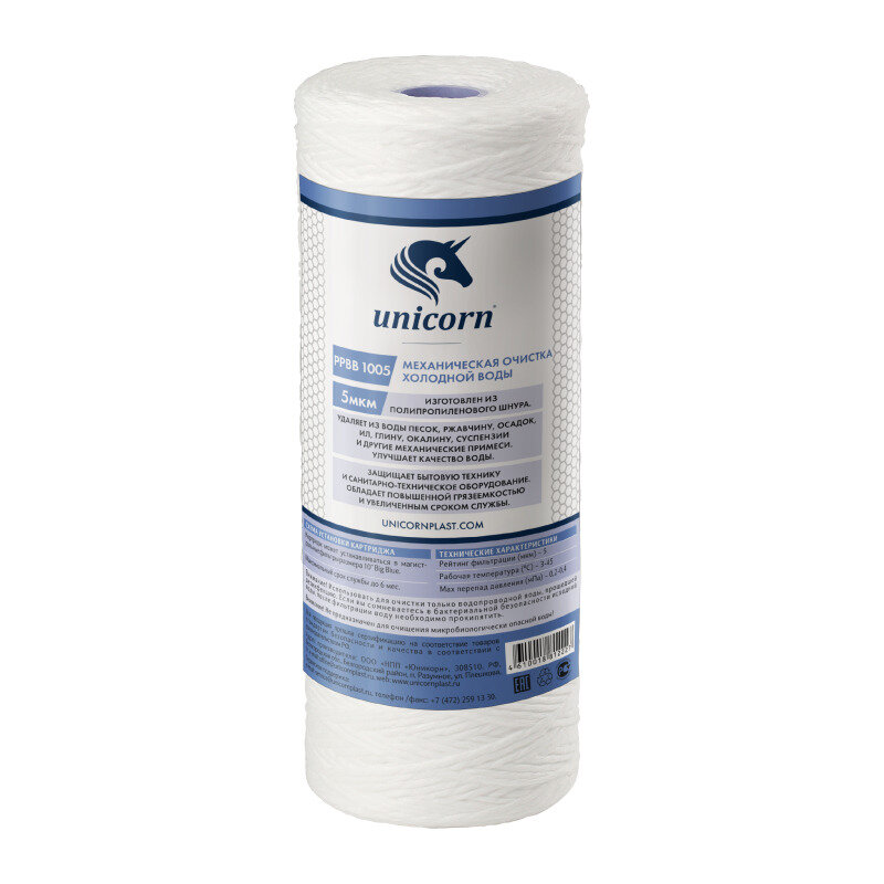 Unicorn Картридж механический из полипропиленового шнура 10' BB 1мкм РР BB 1001 РР ВВ 1001 .