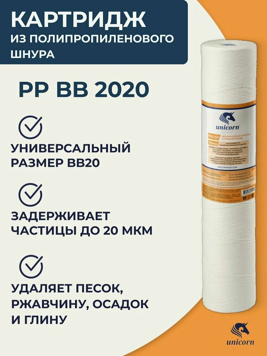 Картридж из п/п шнура для механической очистки воды Unicorn PP20BB20 20BB 20МКМ ИС.230086 541189