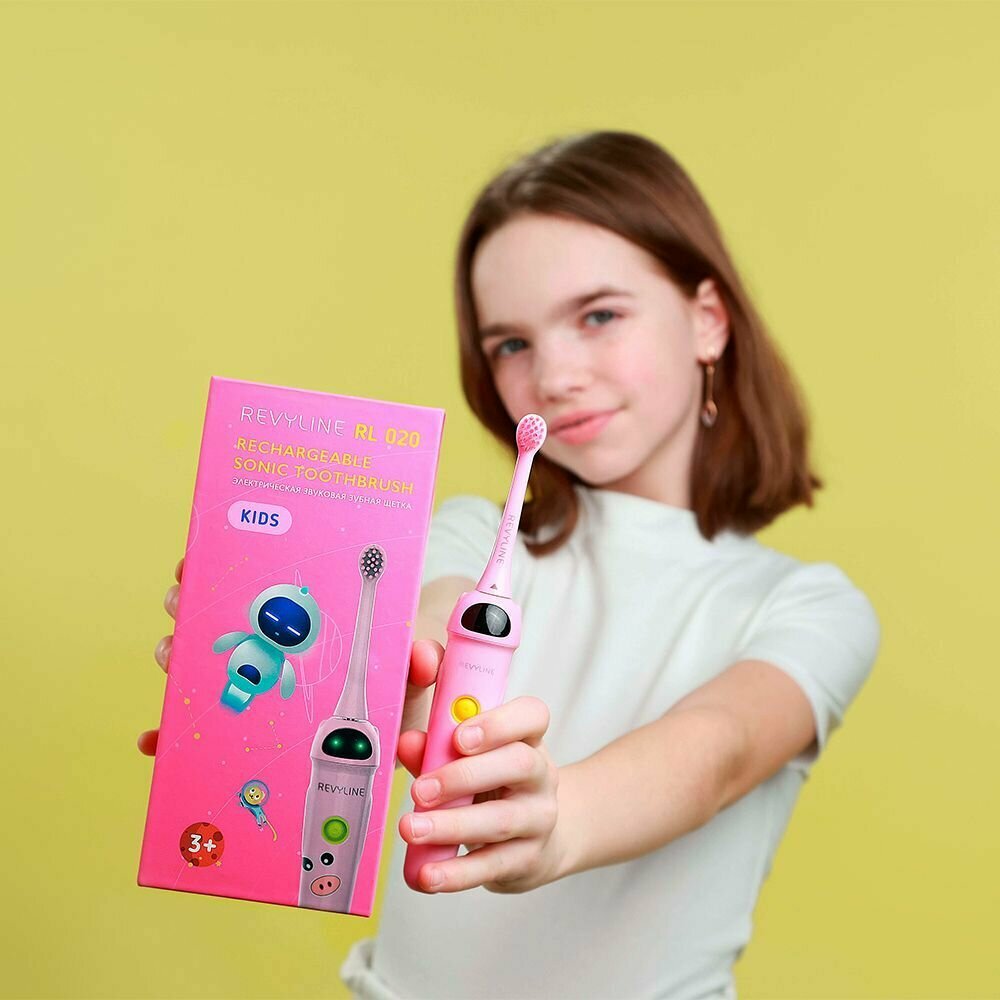 Электрическая звуковая зубная щетка Revyline 020, для детей, розовый