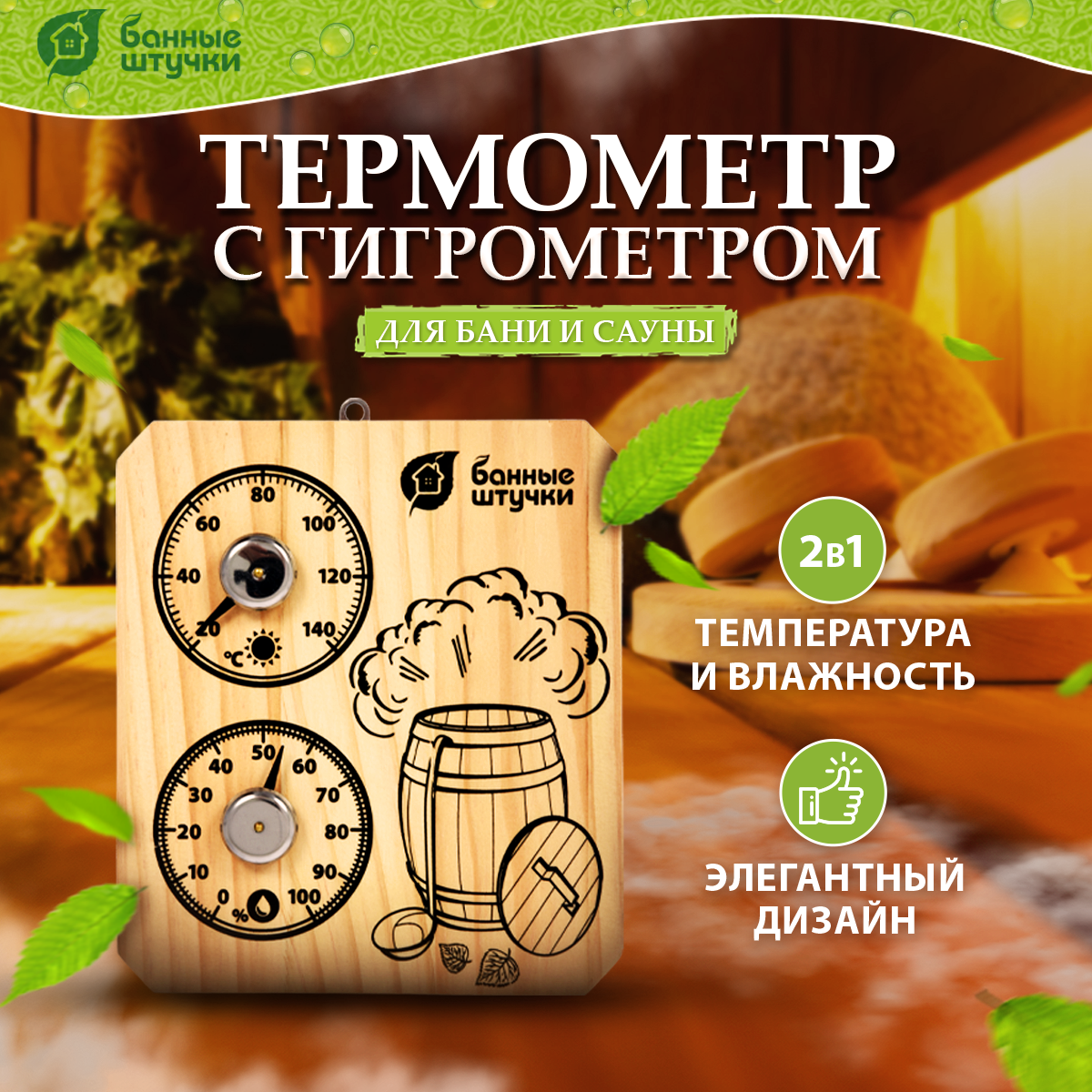 Термометр с гигрометром для бани и сауны Банная станция Пар и жар 18045
