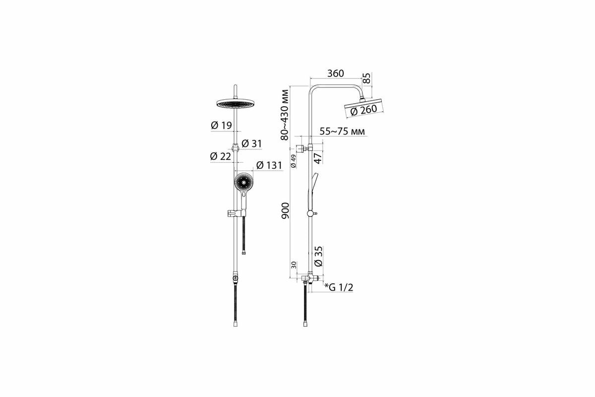 | Высота стойки для душа | 130 мм |