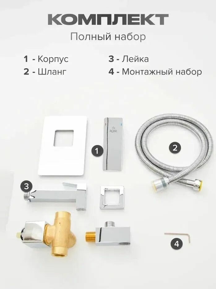 Гигиенический душ со смесителем Rose R1805C-1, белый