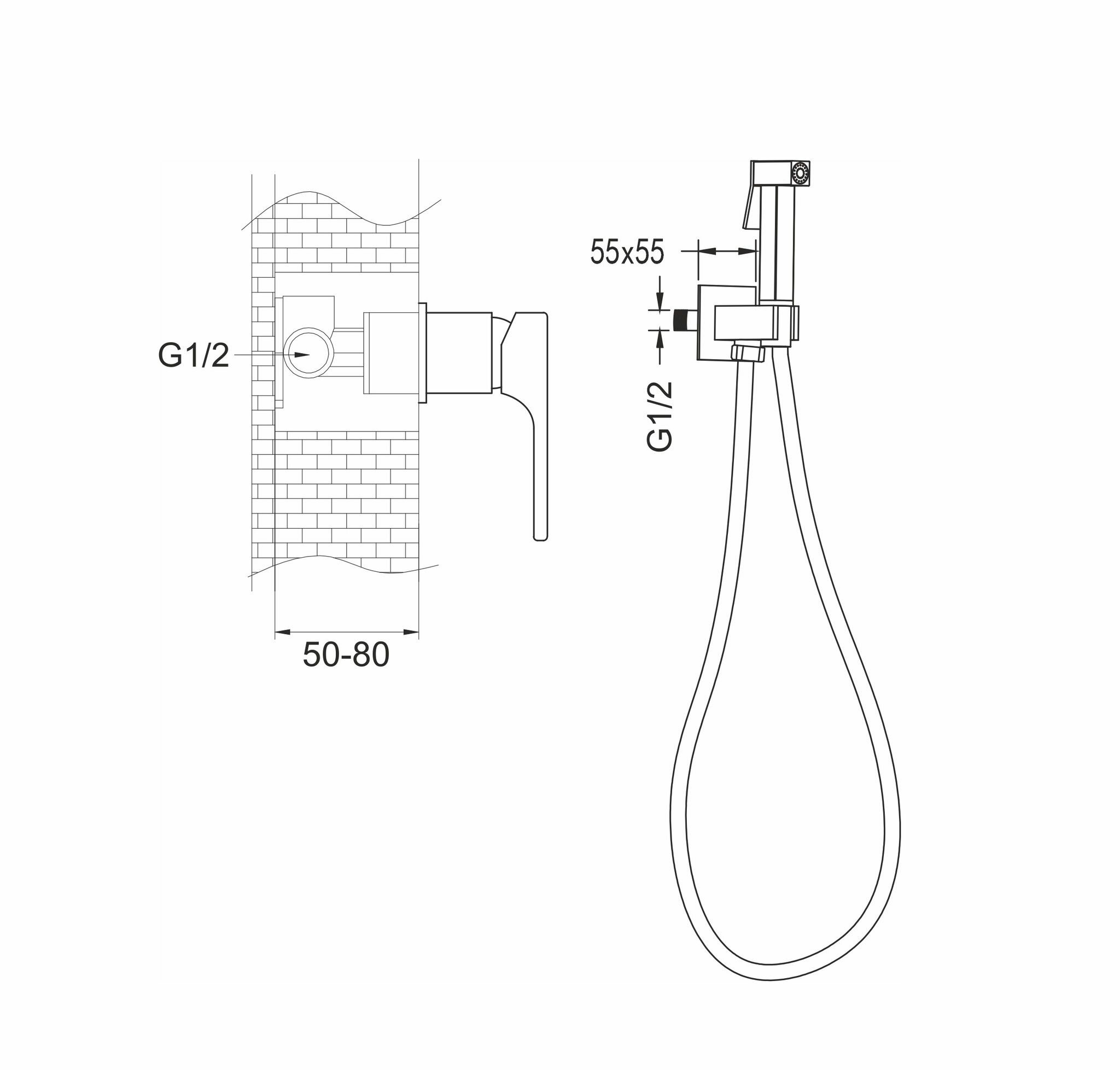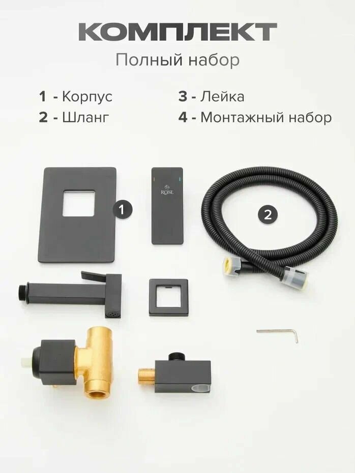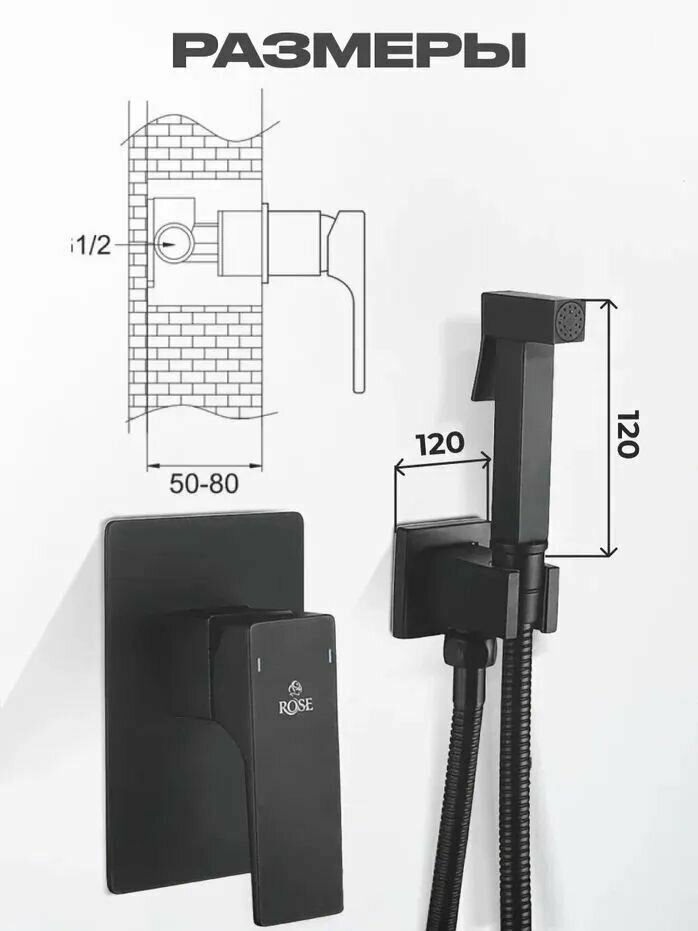 Гигиенический душ со смесителем Rose R1805H-1 черный