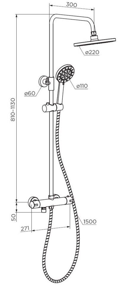 | Высота стойки для душа | 600 мм |