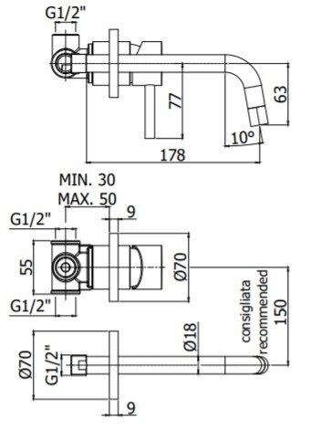 Смеситель Paffoni Light LIG006NO70 со встраиваемой частью