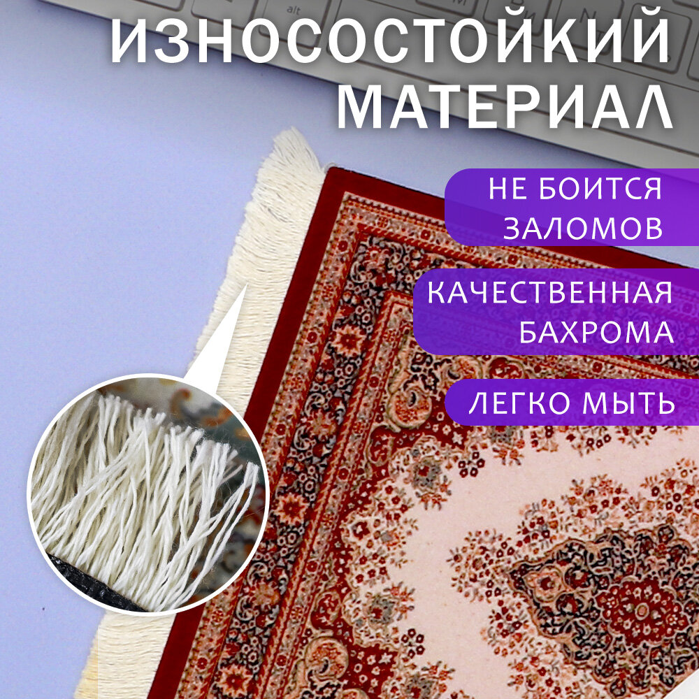Коврик для мыши, игровой коврик для ПК, компьютерный коврик Персидский ковер Эврика (бордовый 27х18 см)