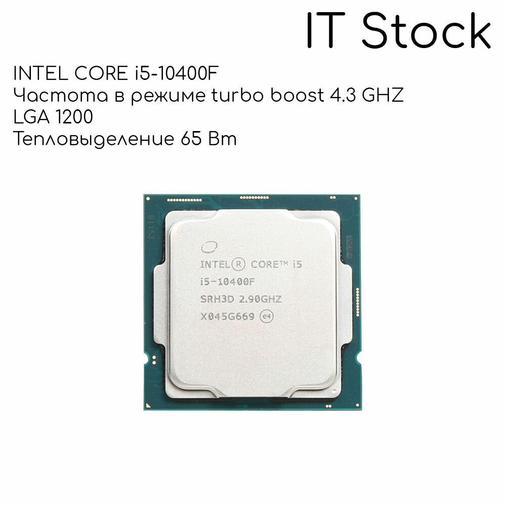Процессор INTEL CORE I5-10400F OEM (Socket 1200. 6-ядерный. 2900 МГц. Turbo: 4300 МГц. Comet Lake. Кэш L2 - 1.5 Мб. Кэш L3 - 12 Мб. 14 нм. 65 Вт)