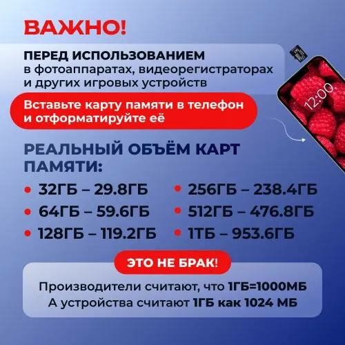 | Плюсы: | ТХ соответствует.! Работала в телефоне, сейчас в планшете. Не один раз форматировалась, проблем нет. |