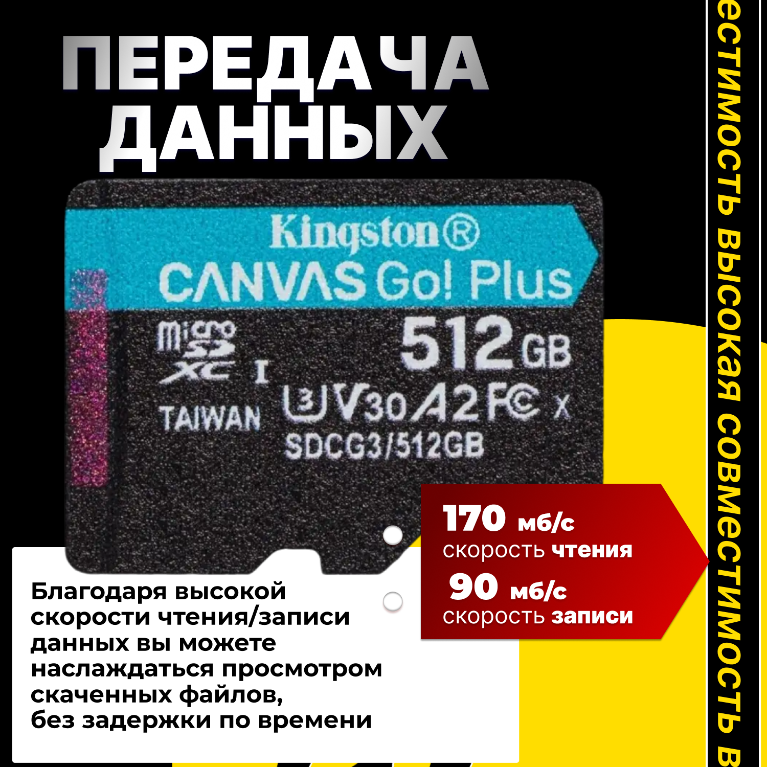 Карта памяти Kingston Canvas Go Plus SDCG3/512GB microSDXC/емкость 512 Гб запись/чтение 90МБ/с/170МБ/с