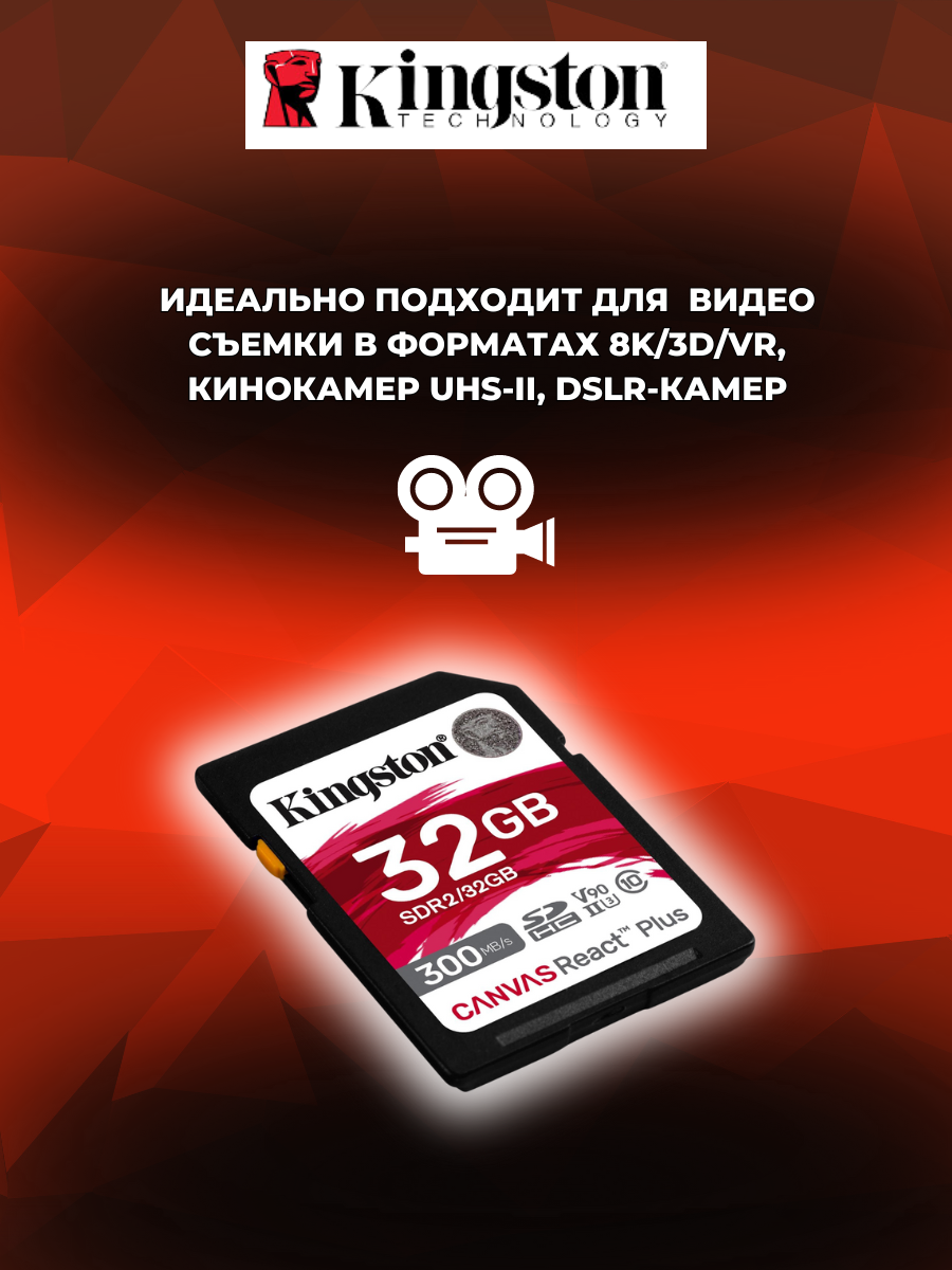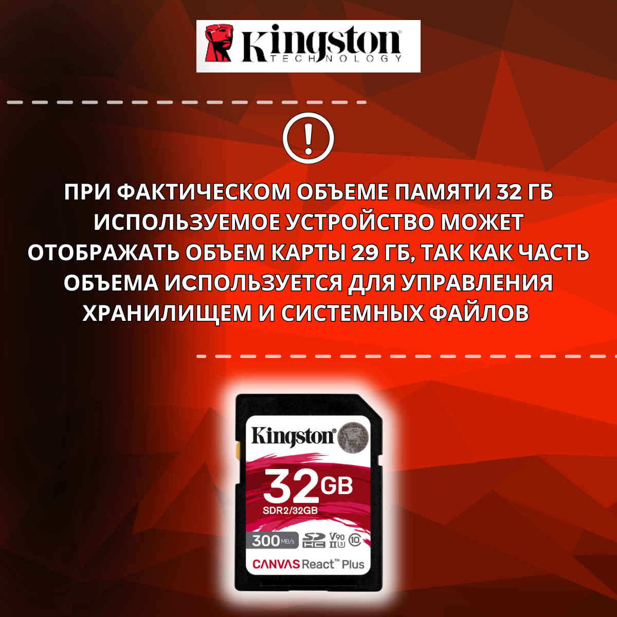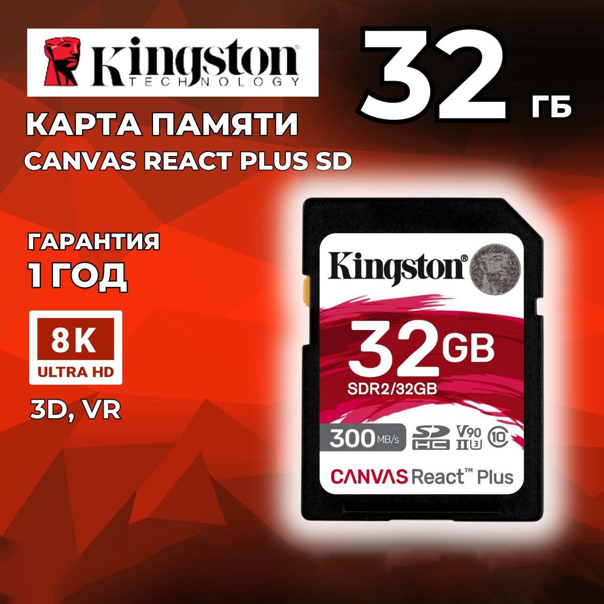 Купить Карта памяти SD 32gb Kingston Canvas React Plus (SDR2/32GB), UHS-II, U3, V90