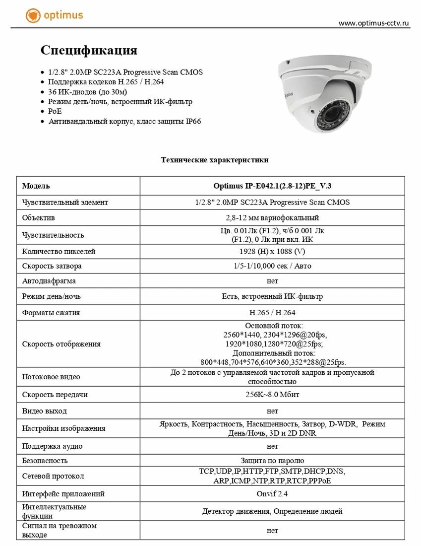 Видеокамера Optimus IP-E042.1(2.8-12)PE_V.1