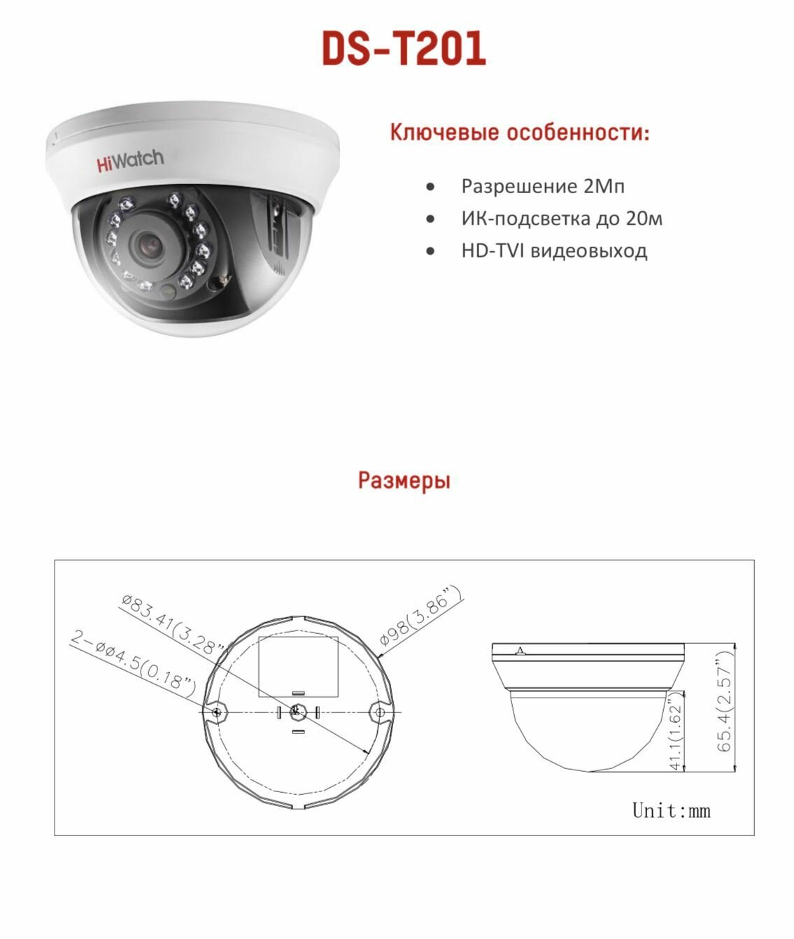 | Дальность ИК-подсветки | 20 м |