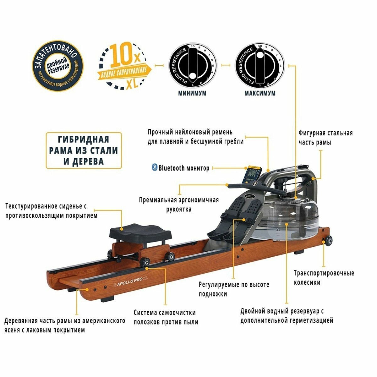 Гребной тренажер для дома Apollo PRO XL интересное: