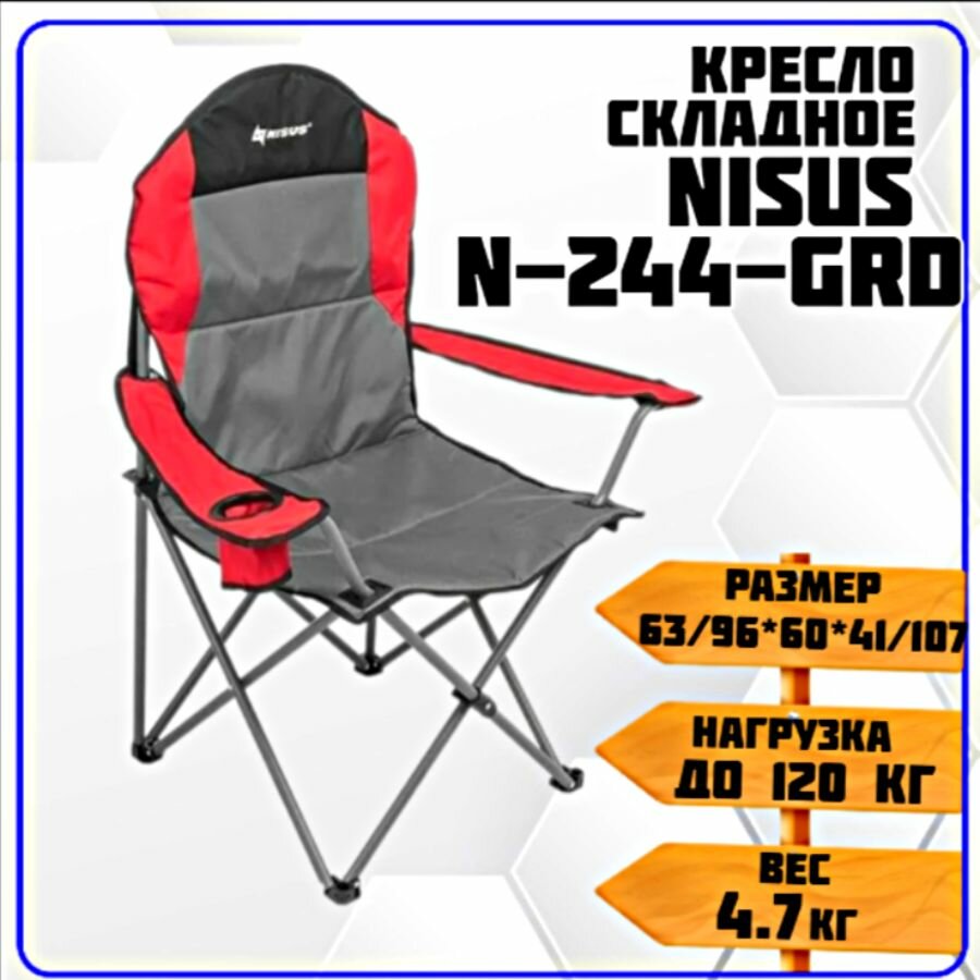 Кемпинговое кресло Nisus N-244 (до 120 кг) (Серый/красный)