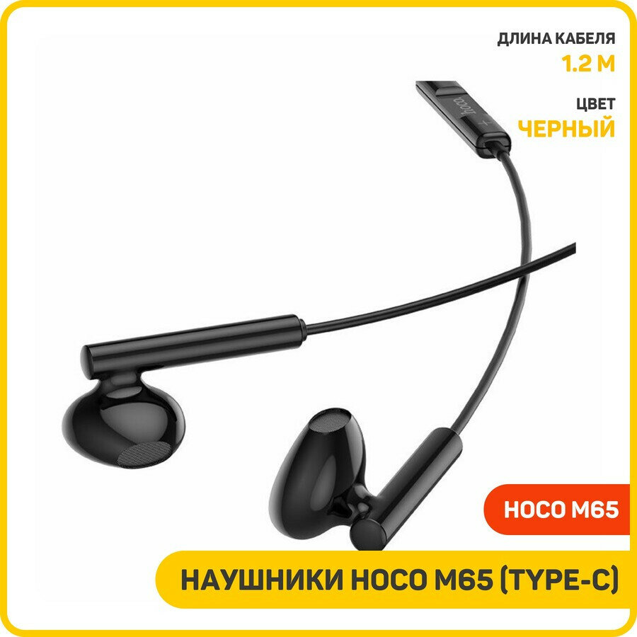 Наушники вкладыши Type-C разъём с МК длина 1.2м Hoco M65 Black