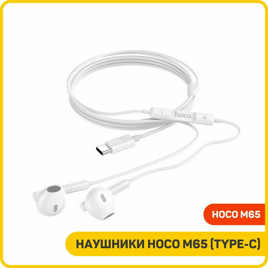 Hoco Наушники Hoco M65, проводные, вкладыши, микрофон, Type-C, 1.2 м, белые