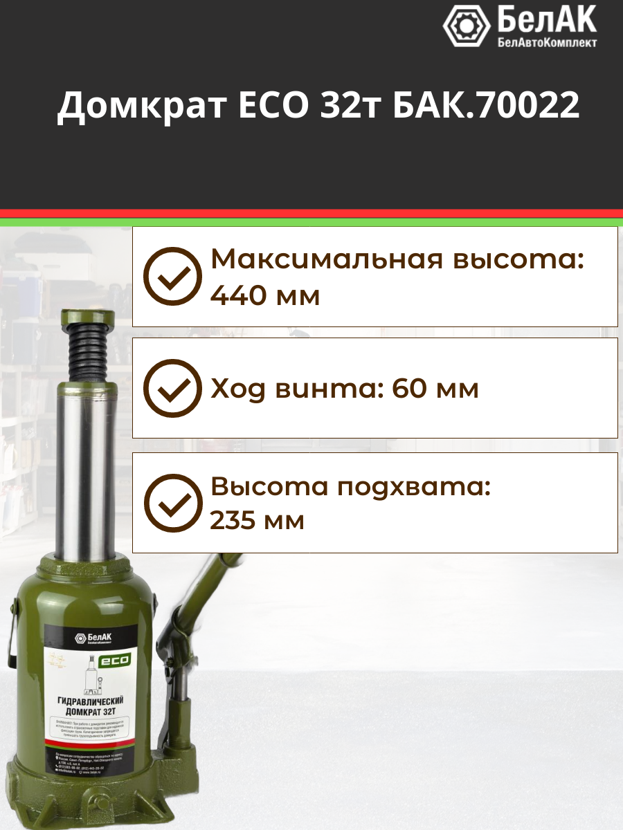 BAK70022 белавтокомплект БАК.70022_домкрат! бутылочный ECO 32 тонны\