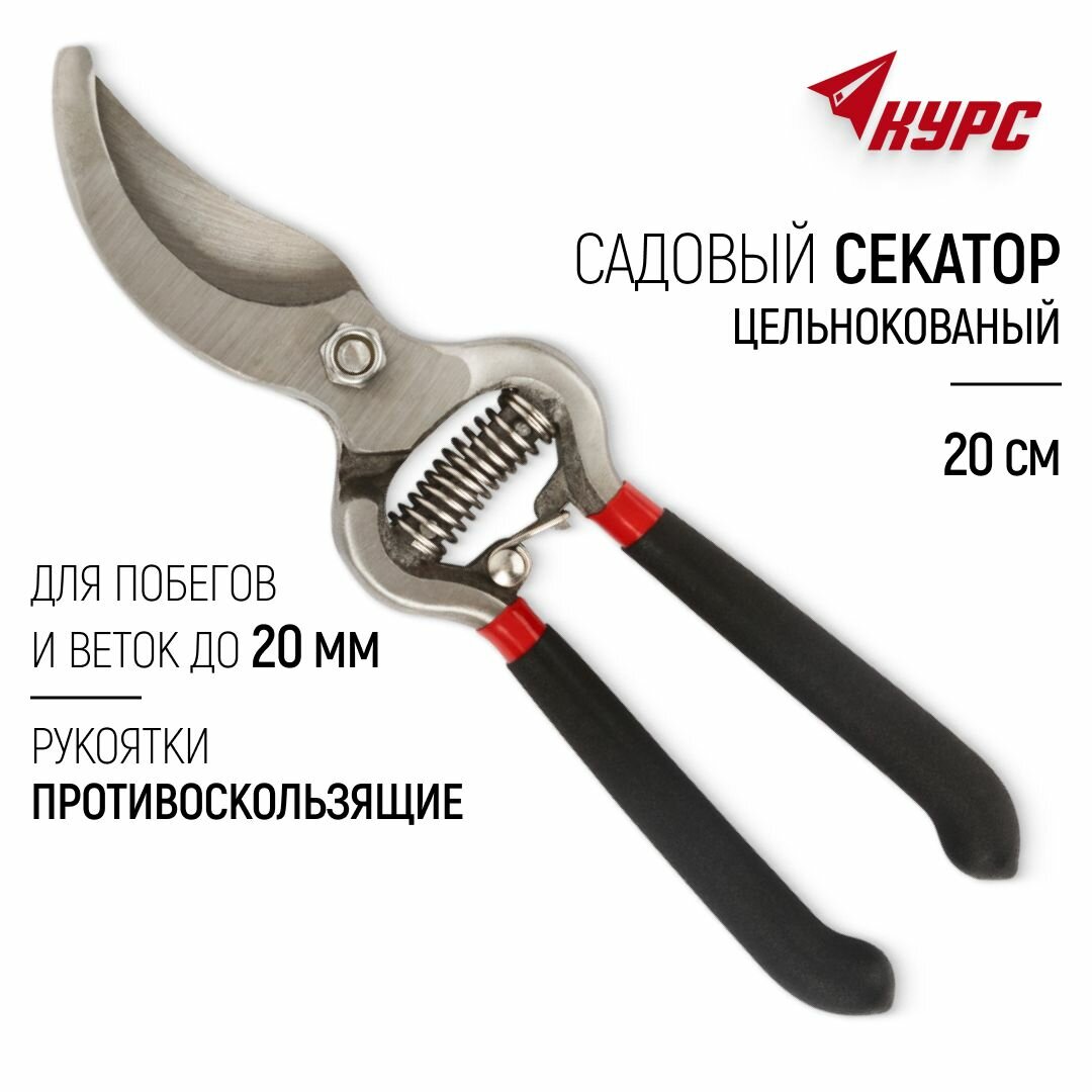 Курс Секатор садовый, режущие кромки внахлест, цельнометаллический, ПВХ покрытие ручек 200 мм [76266]