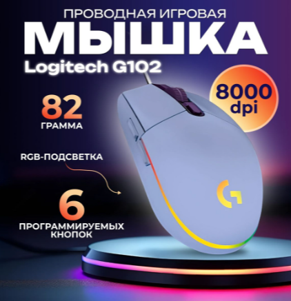 Игровая мышь Logitech G G102 Lightsync сиреневый, 8000dpi, RGB-подсветка