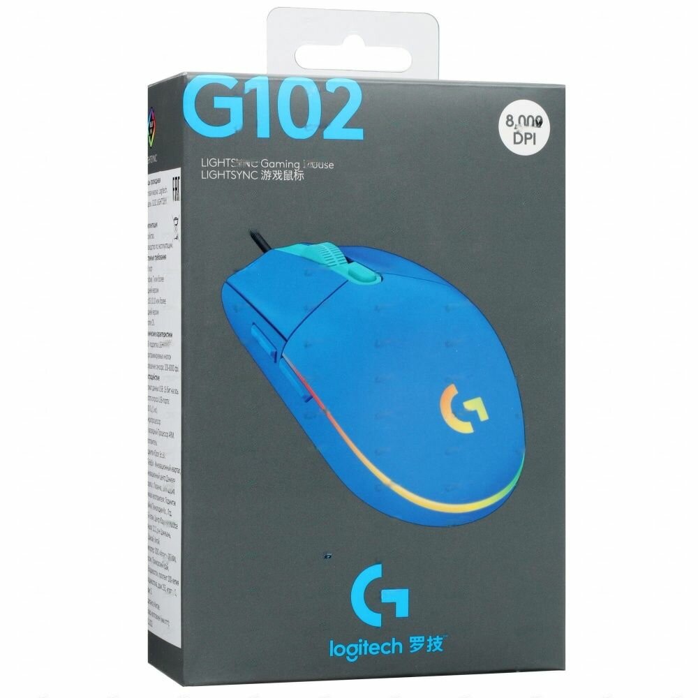 Игровая мышка Logitech G102 Lightsync (голубой)