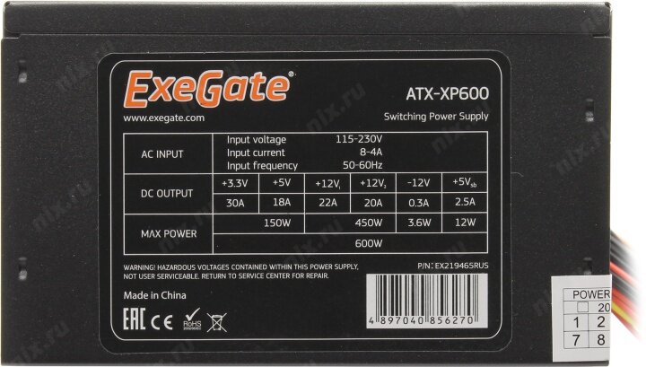Ниже Вы можете прочитать отзывы на Блок питания Exegate ATX-XP600 Black, 12cm fan, 24+4pin, (6+2)pin PCI-E, 3*SATA, 1*FDD, 2*IDE ., ознакомится с подробными характеристиками, посмотреть интересные обзоры и фотографии на Блок питания Exegate ATX-XP600 Black, 12cm fan, 24+4pin, (6+2)pin PCI-E, 3*SATA, 1*FDD, 2*IDE ..