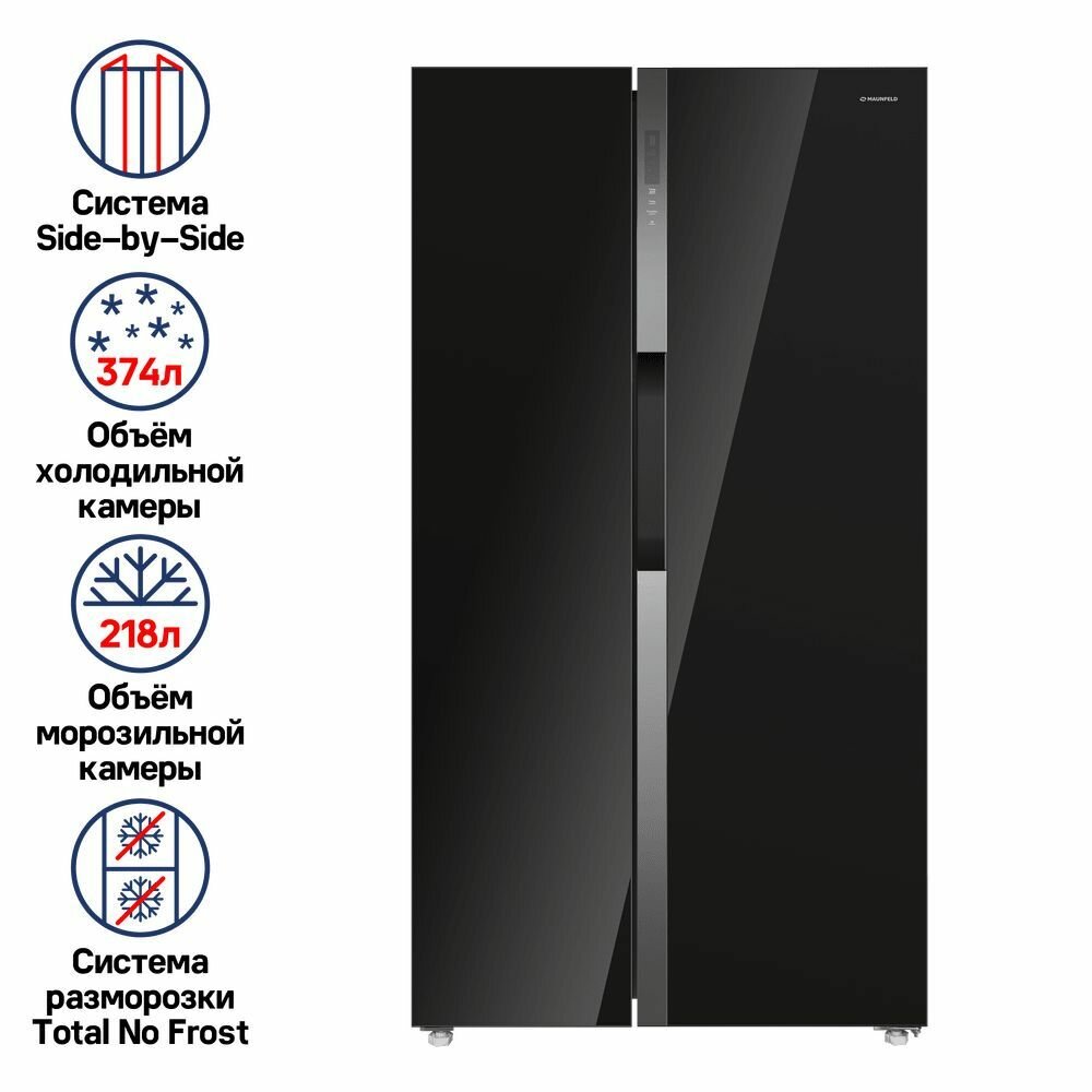 Холодильник двухкамерный MAUNFELD MFF177NFB No Frost, Side by Side, инверторный черный