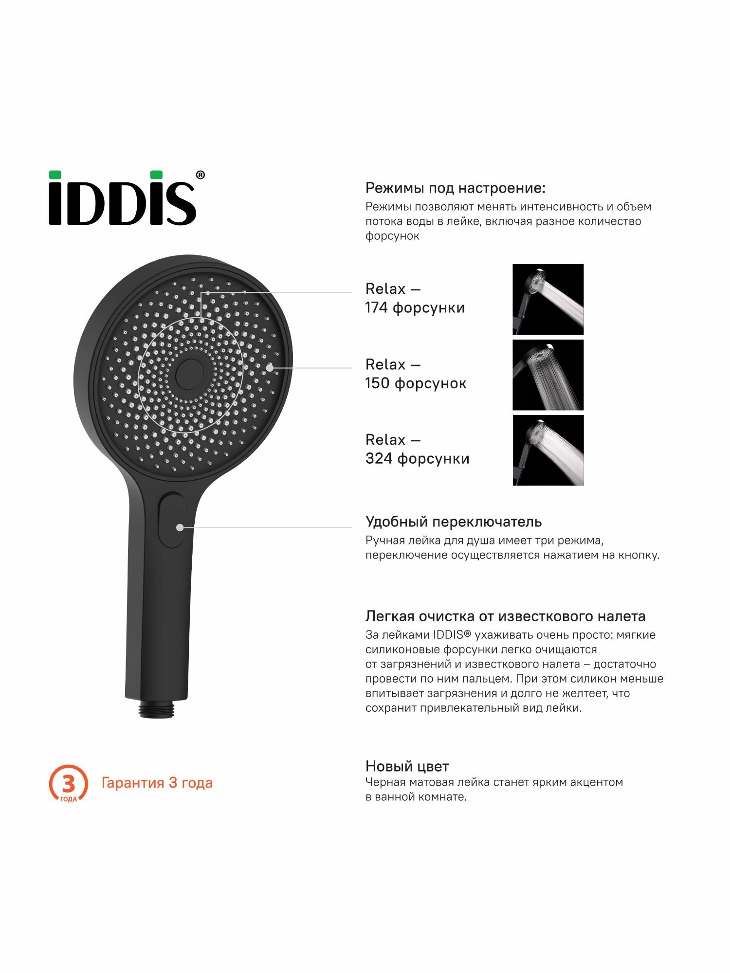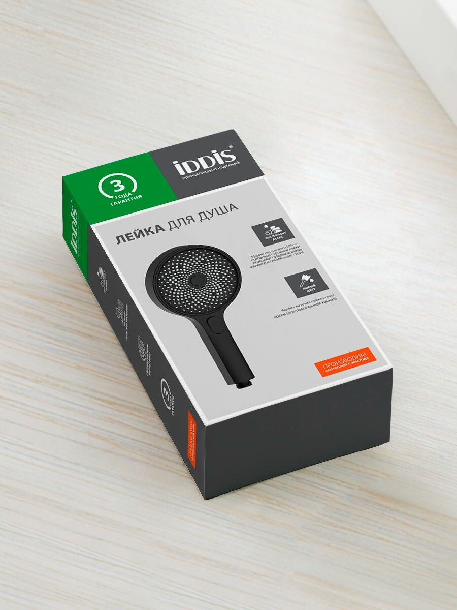 Лейка для душа IDDIS SpaHome SPA3F0Bi18, черная, 3 режима