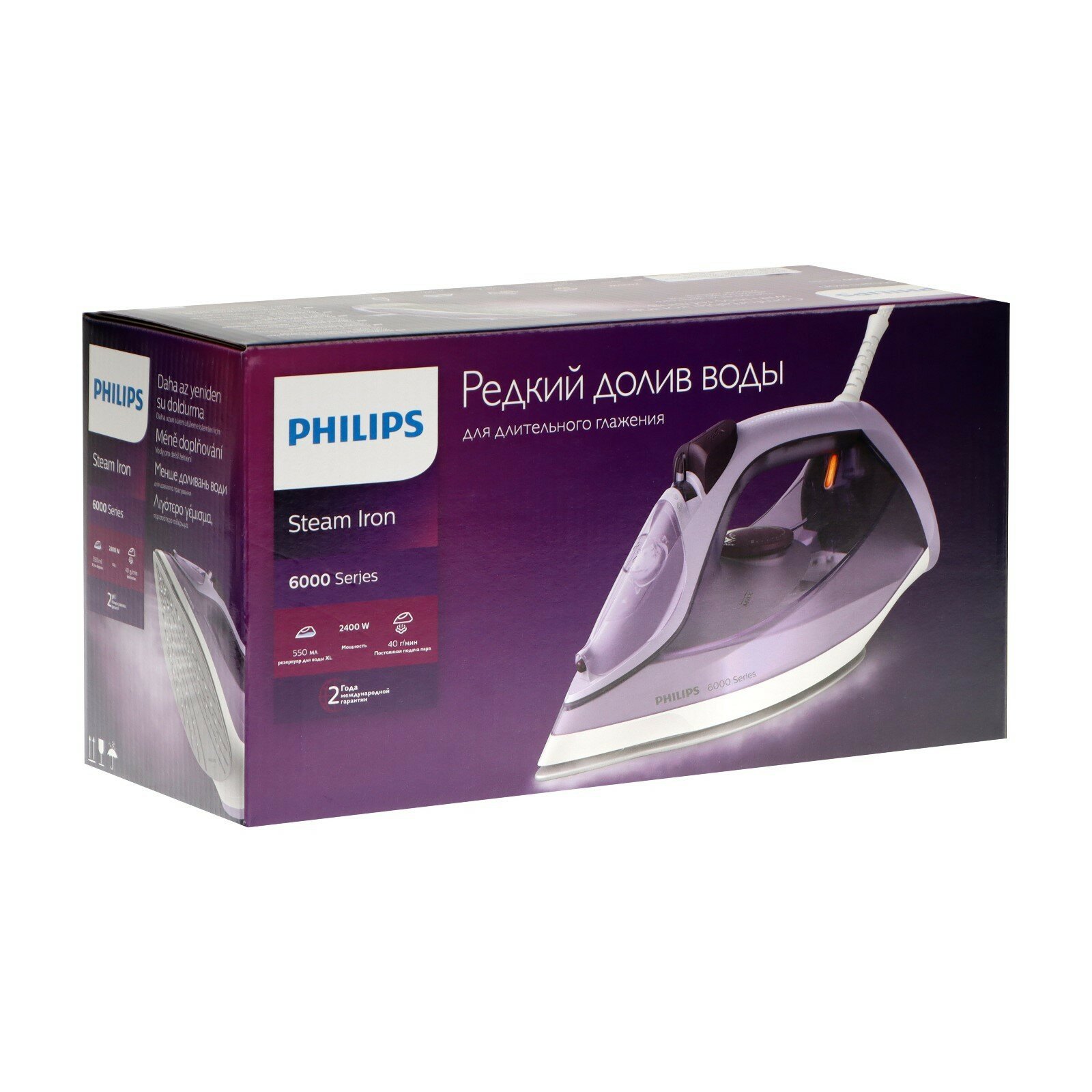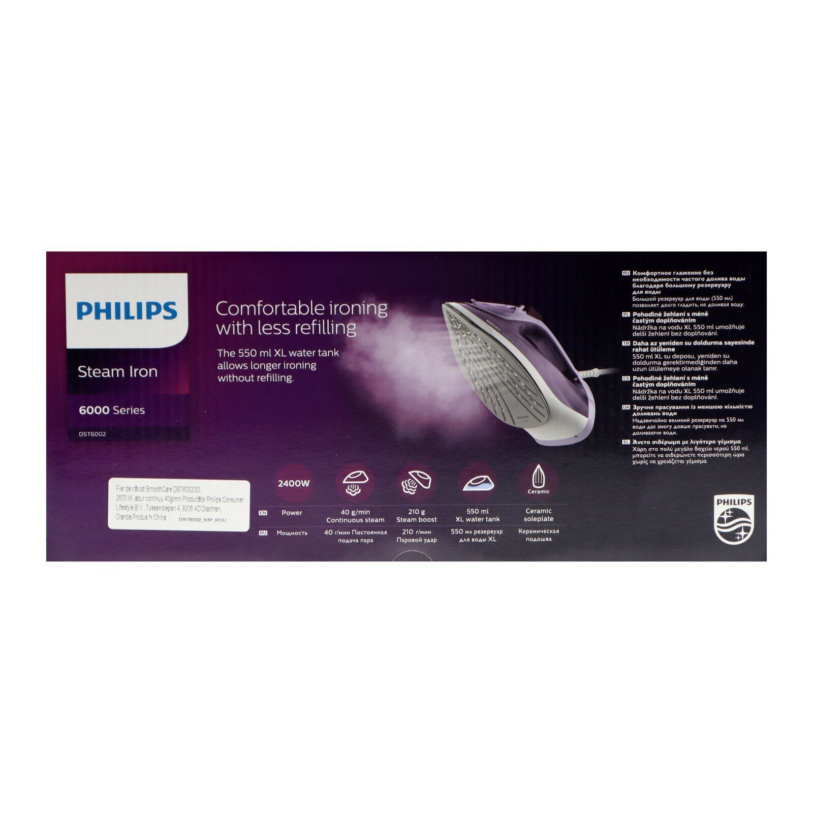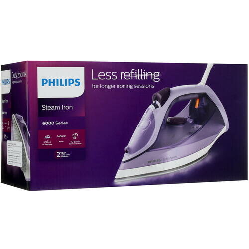 Утюг Philips DST6002/30, 2400 Вт, керамическая подошва, 40 г/мин, 550 мл, фиолетовый интересное: