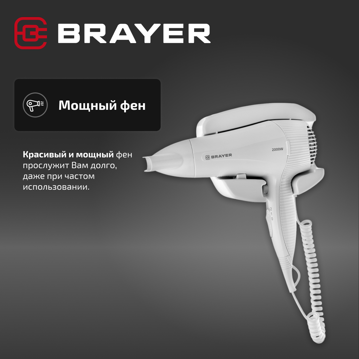 BRAYER BR3021 Фен настенный, 2000 Вт,белый