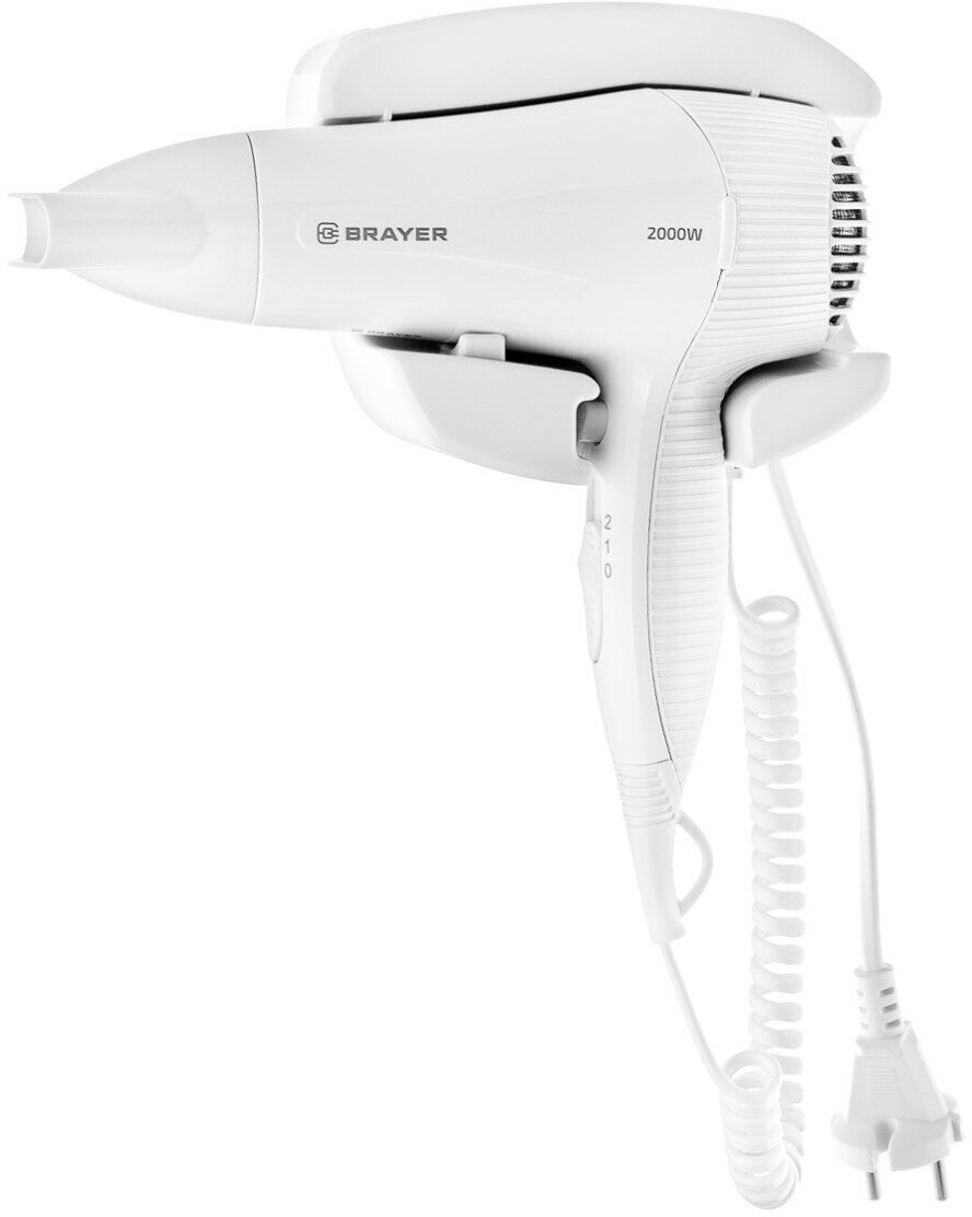 Фен для волос настенный BRAYER BR3021, 2000 Вт, пластиковый корпус, 2 скорости, белый