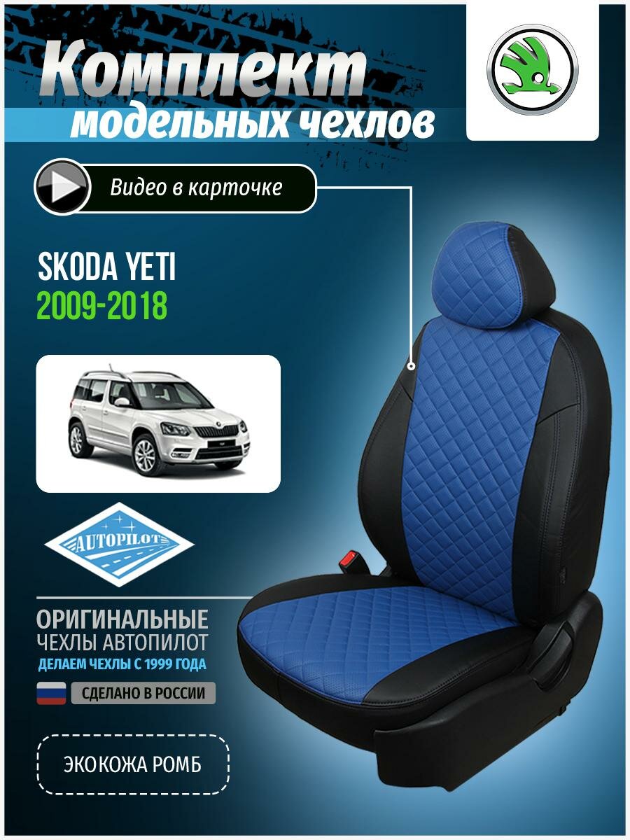 Купить Комплект чехлов Автопилот Ромб Skoda Yeti (передние спинки одинаковые) с 09г. Черный + Синий