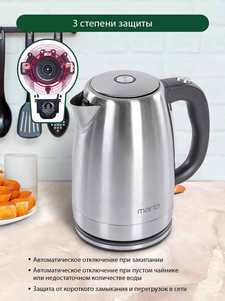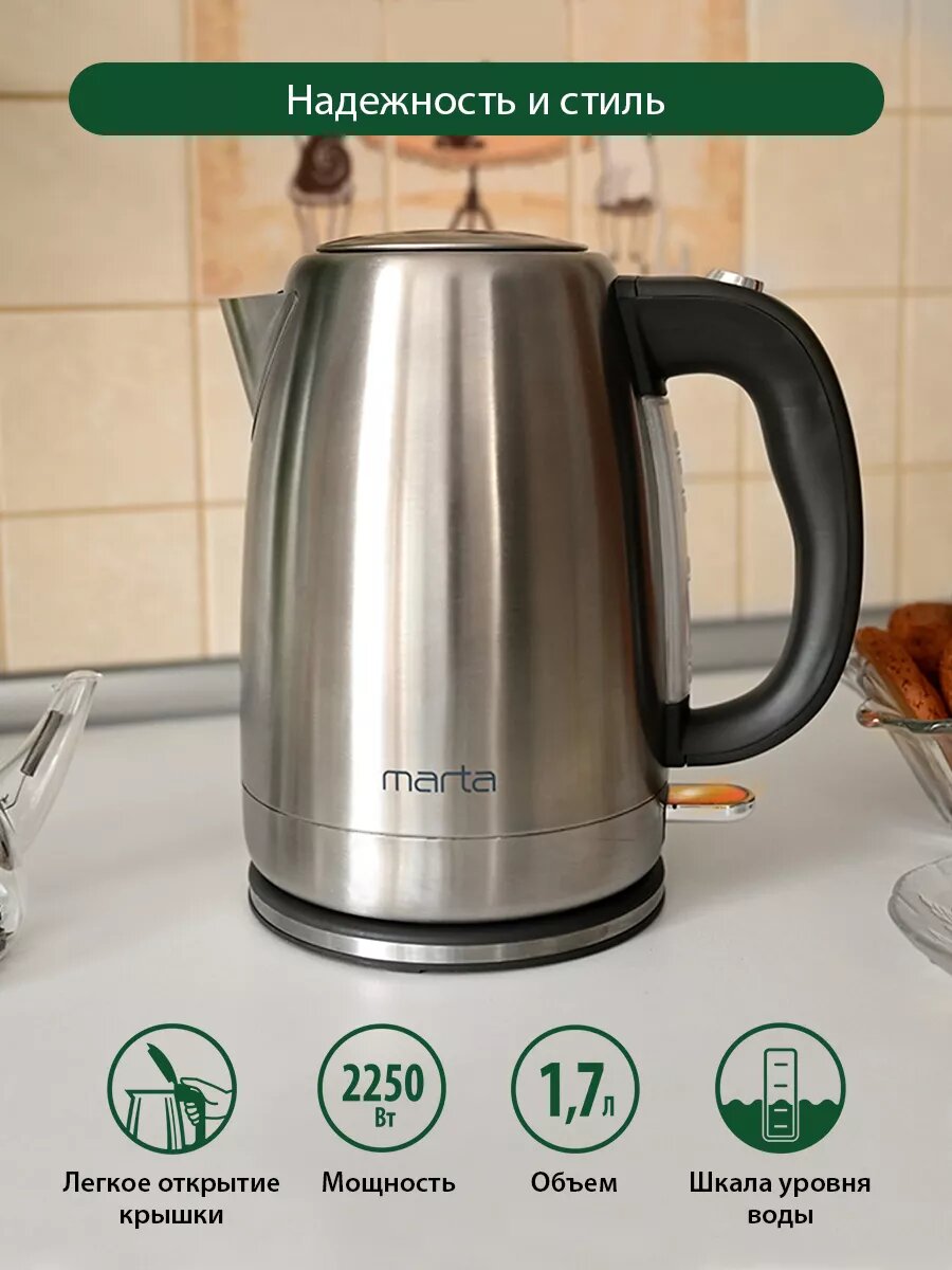 Чайник Marta MT-4558 черный жемчуг, 2250W, 1.8л, автоотключение при закипании/отсутствии воды, закры