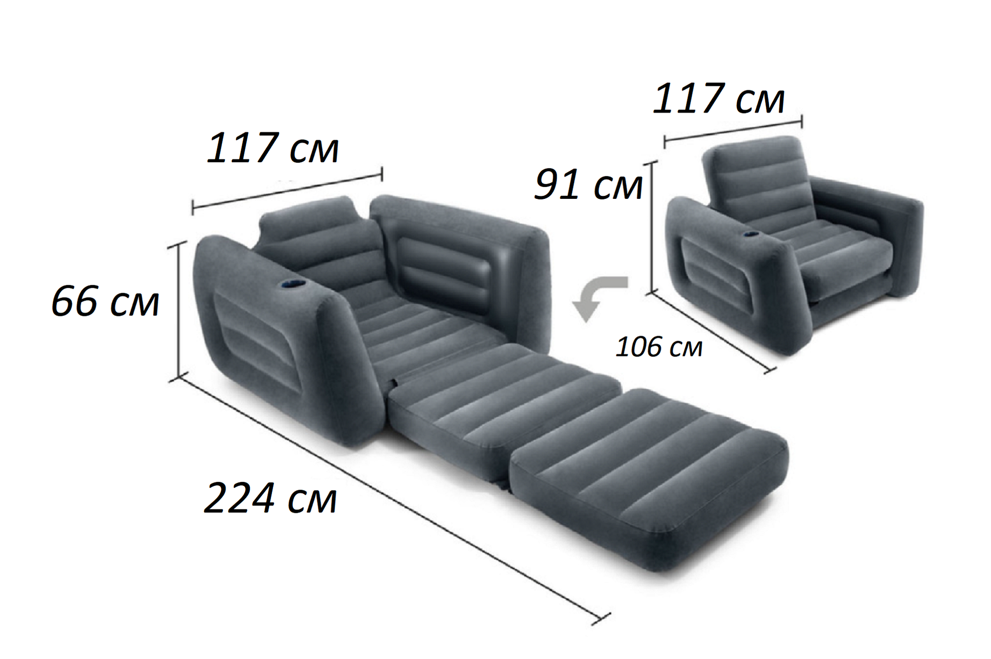 Надувное кресло Intex Pull-Out раскладное, 117х224х66 см, Intex