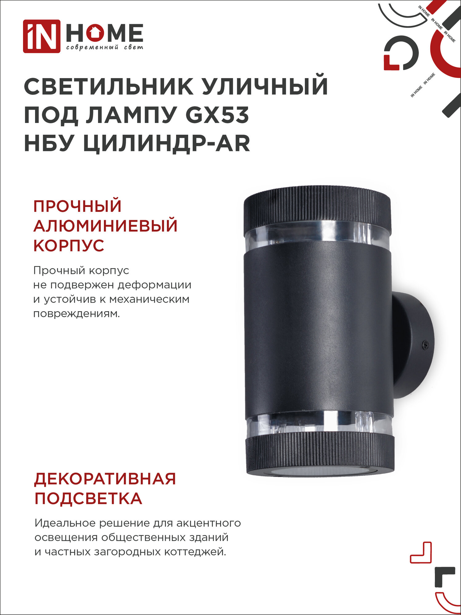 Светильник уличный односторонний НБУ ЦИЛИНДР-1хGX53-BL-AR алюминиевый под лампу 1хGX53 IP65 черн. IN HOME 4690612044668