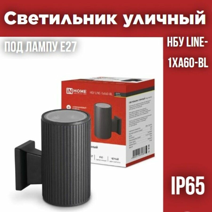 Светильник НБУ LINE-1хA60-BL E27 IP65 230В уличный настенный односторонний алюм. под лампу 1хA60 черн. IN HOME 4690612037936