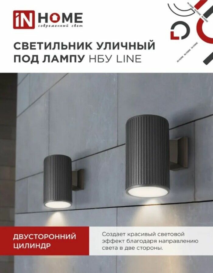 Светильник уличный двусторонний НБУ ЦИЛИНДР-2хGX53-BL-AR алюминиевый под лампу 2хGX53 IP65 черн. IN HOME 4690612044675