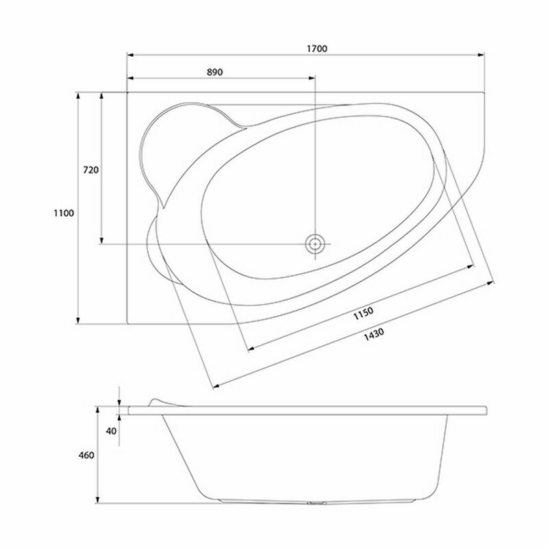 Ванна асимметричная Cersanit Kaliope 170x110 правая 63444