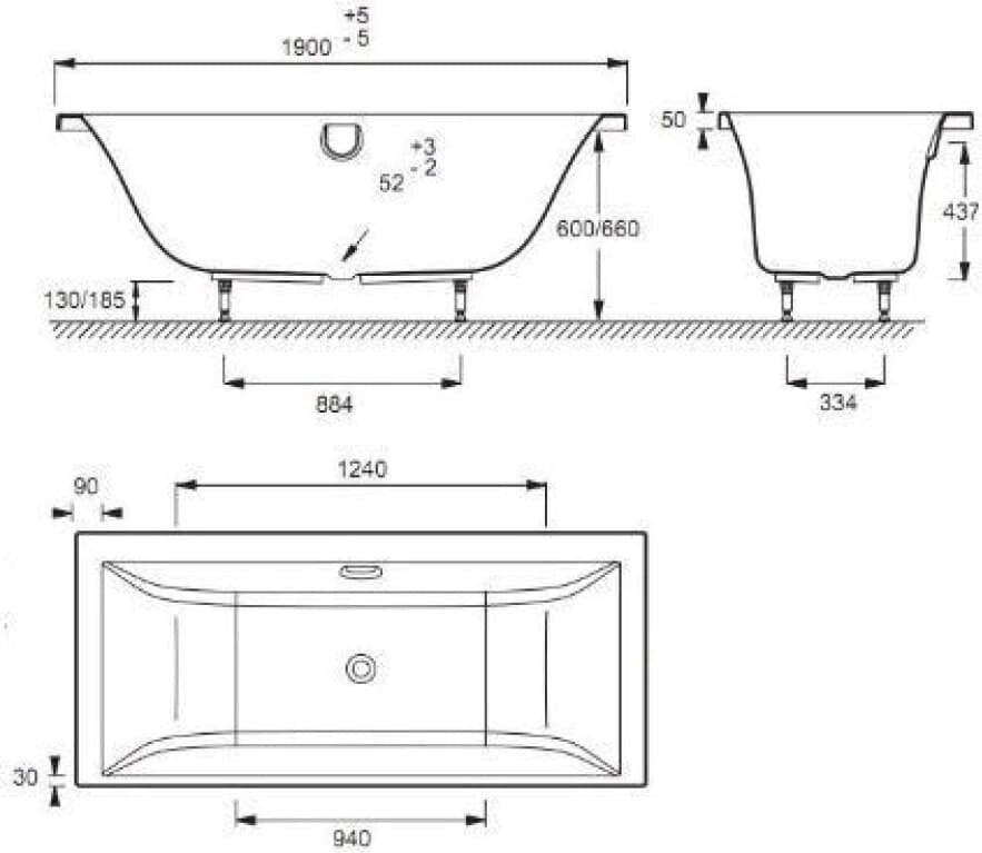 Акриловая ванна Jacob Delafon Elite 190х90 слив в центре